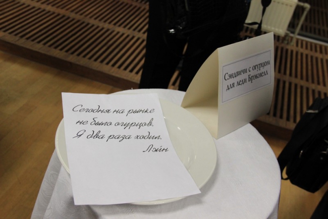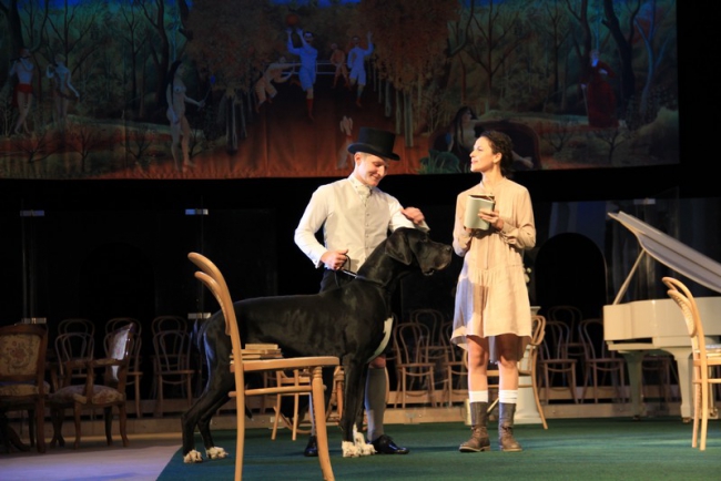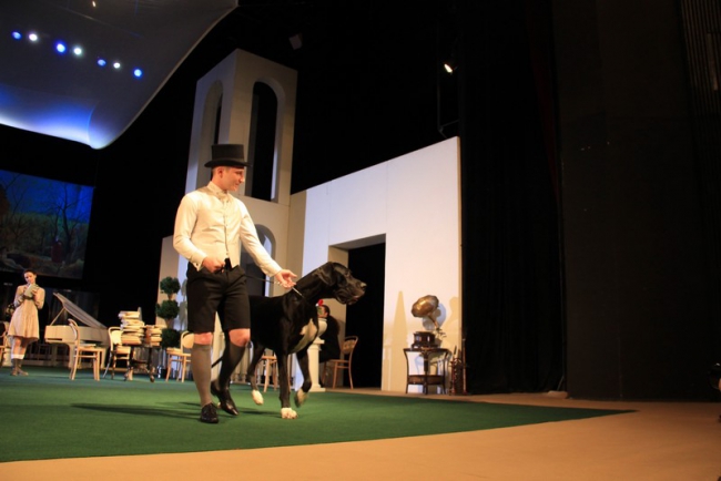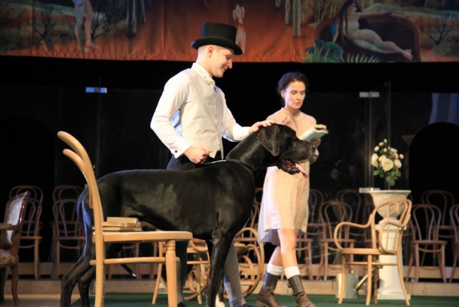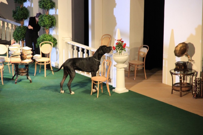 В антракте в фойе зрителей развлекал музыкальный салон, и продавали бутерброды с огурцом – такими питались герои пьесы. Одновременно с этим на сцене продолжалось музыкальное действие, сопровождавшее смену декораций. Вместе с актерами в нем участвовал дог. Он охотно подавал зрителям лапу и позировал для фотографий.