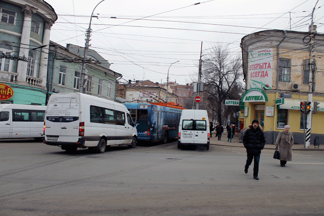 «Скопление» общественного транспорта по улице Чернышевского (в сторону Заводского района) мешает проезду машин по Московской, поскольку маршрутки могут остановиться не только на «зебре», но и занять при этом одну полос смежной дороги. Усугубляет ситуацию и то, что остановившиеся микроавтобусы закрывают обзор на светофор: пешеходы перебегают улицу «вслепую». Так, например, на глазах у корреспондента женщина, не увидев красный свет светофора, начала переходить улицу и по счастливой случайности не попала под колеса движущихся по встречной полосе авто.