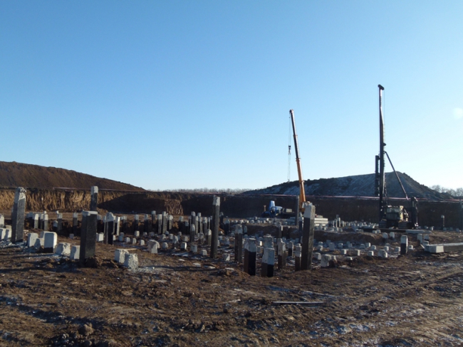 «Сейчас на стройке нет рабочих потому, что мы приехали в обеденный перерыв. На площадке уже забито 700 свай из более чем 1100 необходимых, скоро начнется заливка фундамента. Объект большой, очень серьезный, поэтому работы не прекращаются, используются специальные материалы и присадки для растворов, чтобы можно было продолжать стройку даже при таких отрицательных температурах», - пояснила Виктория Бородянская.
