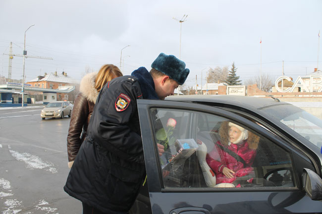 Стоит отметить, что первоначальной реакцией остановленных сотрудниками ГИБДД автоледи был испуг по поводу возможного нарушения правил дорожного движения. Но после того как представители автоинспекции поздравляли их с предстоящим праздником, вручали подарок (пакеты с автохимией) и цветы, на лице у женщин появлялась улыбка. Не остались без внимания и дети автолюбительниц, им организаторы подарили игрушки.