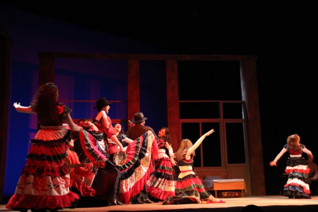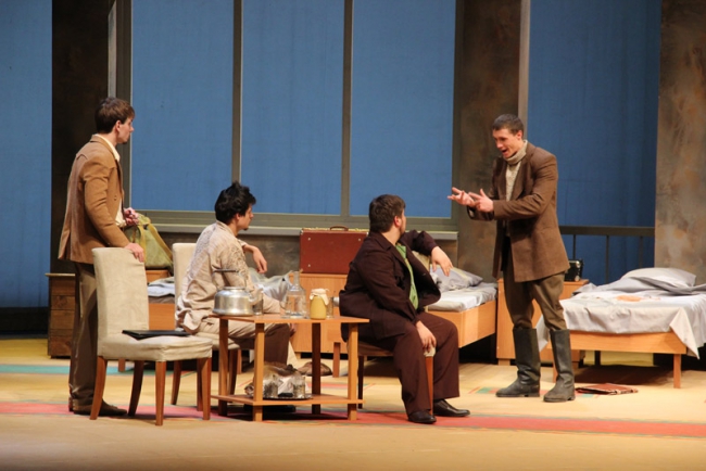 Постановка Любови Баголей в исполнении молодых актеров вышла живой, яркой и музыкальной — на сцене появляются цыгане и балерины, а монологи героев то и дело заставляют зрителя улыбаться.