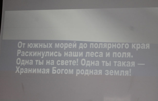 Губернатор Саратовской области Валерий Радаев не стал петь гимн Российской Федерации вчера на Гражданском форуме в СГЮА. Главную песню страны включили перед началом пленарного заседания, и для удобства гостей на экране высвечивались подсказки - четверостишия с куплетами и припевом.
