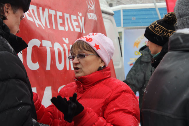 Первый секретарь Саратовского обкома КПРФ, депутат Госдумы Ольга Алимова в своем выступлении призвала всех неравнодушных граждан объединиться против необдуманных действий нынешней власти. В качестве примера она использовала популярный детский мультфильм «Маша и Медведь», где Маша олицетворяет народ, а Медведь действующую власть.