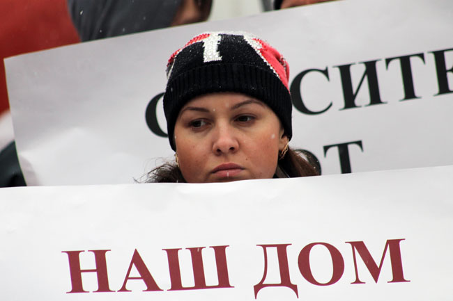 «Нас выселяют, вселяют обратно и хотят снести. Мы обращались в первую очередь к ним (истцам о сносе домов) с просьбой о милосердии, о понимании того, что молодые люди не могут лишиться единственного жилья. Милосердия не произошло, как это обычно бывает у людей, которые смотрят себе только под ноги, но не в глаза людям и беременным женщинам. Мы обращались к власти, которые должны быть ответственны за то, что этот дом стоит уже много лет. Власти оказались абсолютно безынициативными, единственной попыткой их было поговорить с истцами. Мы сейчас стоим на грани выживания, абсолютно не понимаем, что нам делать, потому что это наше единственное жилье», - обратилась к митингующим представитель жильцов Екатерина Шувакина.