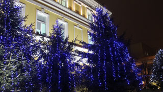 На Театральной площади украсили не только живые ели, но и хоккейную коробку. «За установкой главной городской елки практически в режиме онлайн следили все местные СМИ. Такого пристального внимания не удостаивается ни одна елка области. Двадцатиметровая железная конструкция составлена из трехсот живых деревьев, украшенных пятью тысячами лампочек, двумя километрами гирлянд и 300 игрушками, - рассказал директор «Саргорсвета». - Нам также удалось в текущем году провести ремонт и ревизию имеющихся гирлянд «Белт-лайт» и приобрести новые гирлянды на тросе с энергосберегающими светодиодными лампами в количестве 1200 штук. Всего город украшают 60 километров праздничной иллюминации.