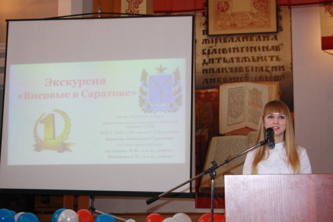 2 место – Екатерина Капцова с проектом «Впервые в Саратове». Культурно-историческая экскурсия включает в себя маршрут по самым брендовым местам города. Объектами показа стали достопримечательности, которые появились в Саратове раньше, чем в других регионах России и даже в мире.