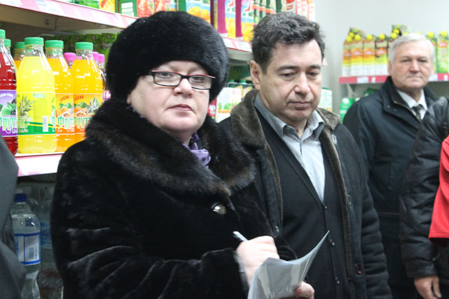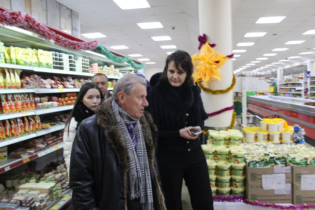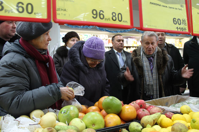 Директор одного из магазинов рассказала общественнику, что цены на продукты устанавливаются в головном офисе, но значительного повышения после падения курса рубля не произошло. Высокие цены на некоторые виды товаров она объяснила предновогодним ажиотажем, который происходит ежегодно из-за повышения спроса. Глава ОПы поинтересовался у сотрудницы также соотношением продукцией местных товаропроизводителей и поставщиков из других регионов.