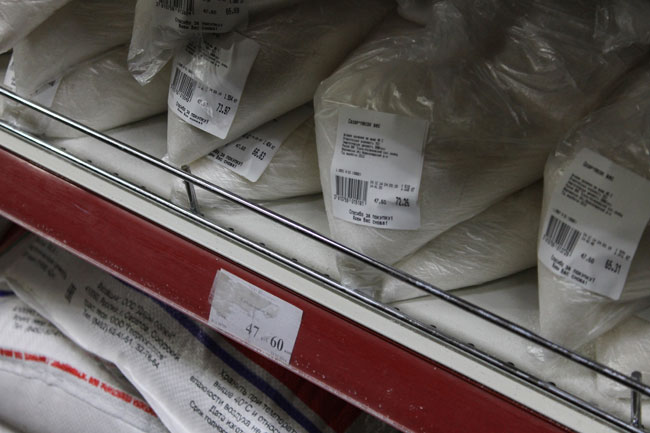 С похожей проблемой участники рейда столкнулись в магазине другой торговой сети. Там Ландо заметил, что самый дешевый сахар стоит порядка 47 рублей за 1 кг, но директор заверила, что у них есть отдельная категория товаров по социальным ценам. Так, по ее словам, самая низкая цена на сахар чуть более 37 рублей, но его пока нет на полках, потому что этой ночью «приехал покупатель и закупил сразу на 8 тысяч». Данный факт вызвал недоумение у Александра Ландо, поскольку он не сразу понял, для чего человеку столько сахара.