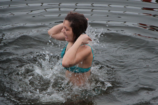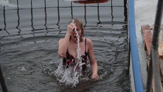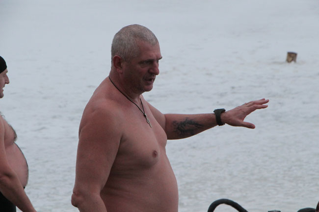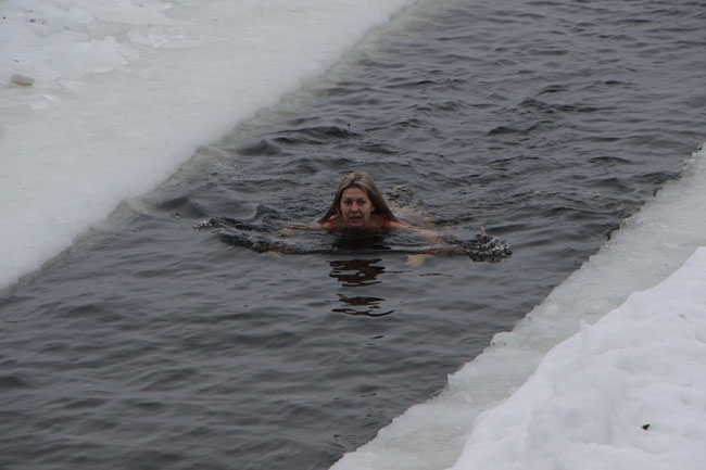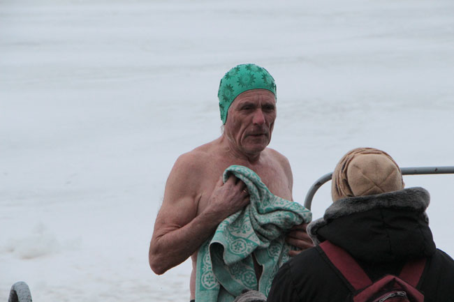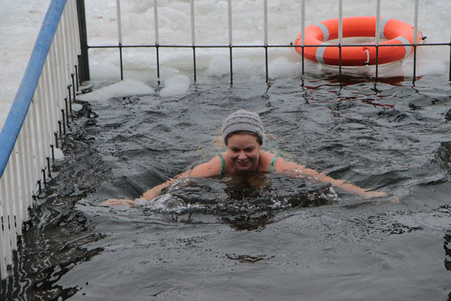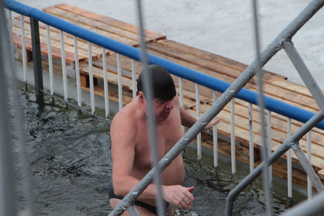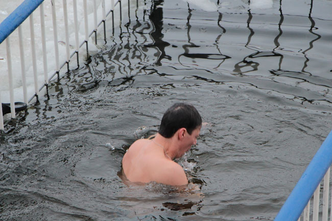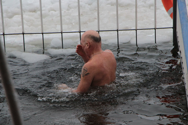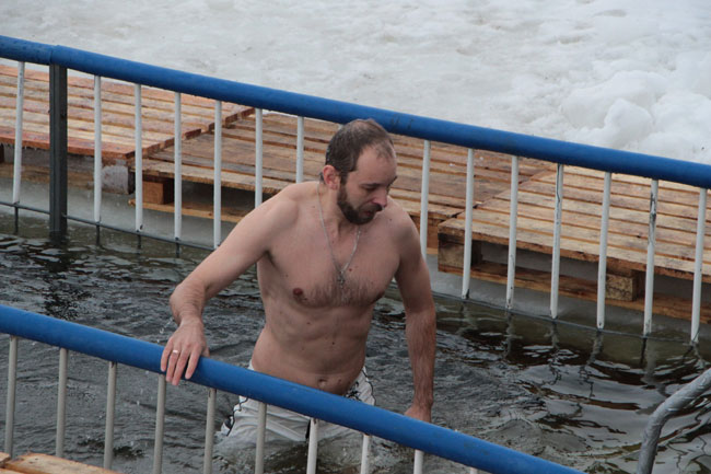 Рядом с прорубью у «Ротонды» дежурят несколько спасательных бригад, автомобиль реанимации, общественный порядок контролируют сотрудники полиции. Купания начались еще ночью, продолжились утром.