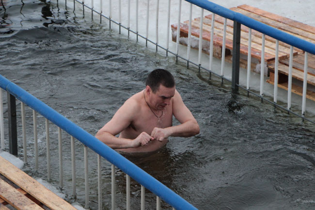 На месте купаний установлена палатка службы спасения, где можно переодеться или согреться после омовения. По данным полицейских, работающих в местах купаний, в проруби уже побывали несколько тысяч саратовцев.