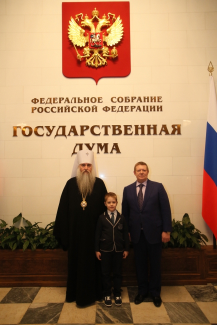 В Госдуме сегодня также побывал митрополит Саратовский и Вольский Лонгин, который сегодня вместе с Патриархом примет участие в богослужении в Храме Христа Спасителя.