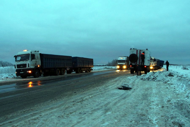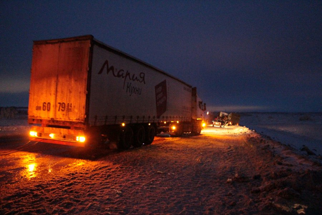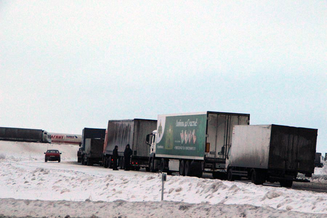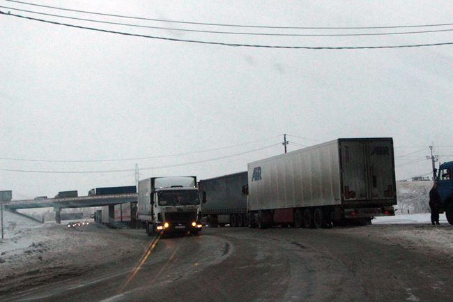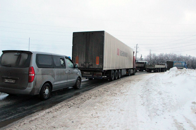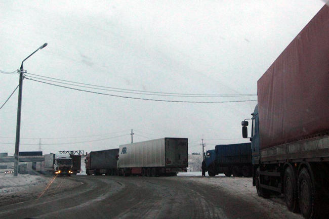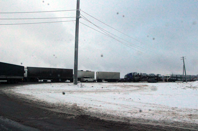 По оценке корреспондента ИГ «Четвертая власть», у обочин стоят около 100 грузовиков из разных российских регионов.