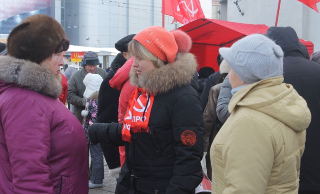 Сегодня в Саратове на площади Кирова состоялась встреча горожан с депутатом Госдумы от КПРФ Ольги Алимовой и местными коммунистами. Первоначально планировался митинг, но за несколько минут до начала акции первый секретарь горкома Александр Анидалов сообщил, что ее не согласовали.