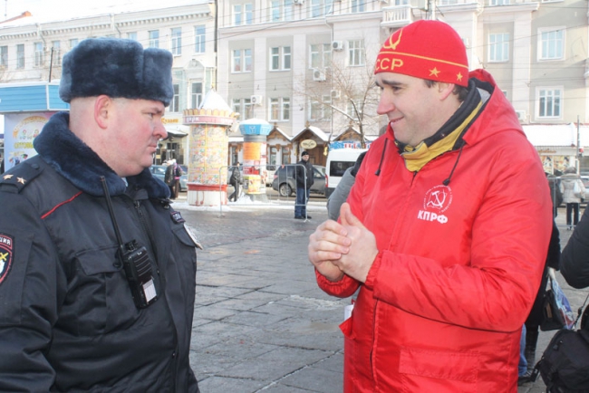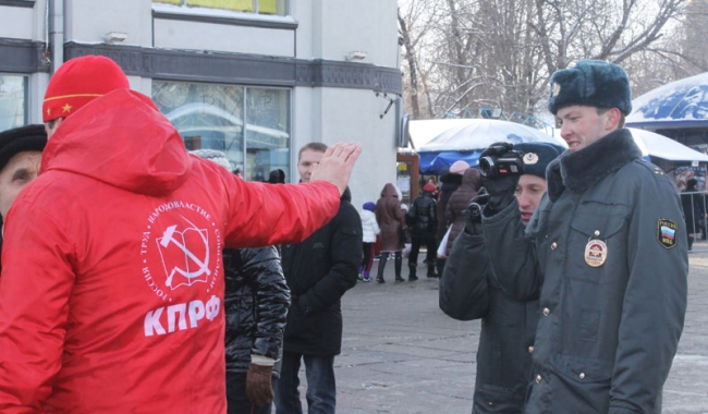 Саратовские коммунисты отбивались от полицейских с видеокамерами