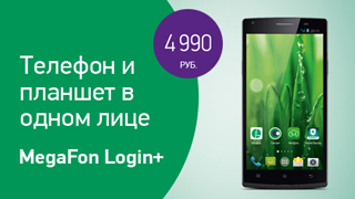 «МегаФон» расширяет линейку мобильных устройств семейства Login. С 1 февраля в продажу поступило мобильное устройство MegaFon Login +, которое объединяет лучшие качества смартфона и планшета. Новинка относится к новому классу мобильных устройств, объединенных под общим названием «фаблет» и будет продаваться по цене 4990 рублей. Это самая привлекательная цена на устройства подобного типа.