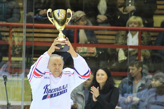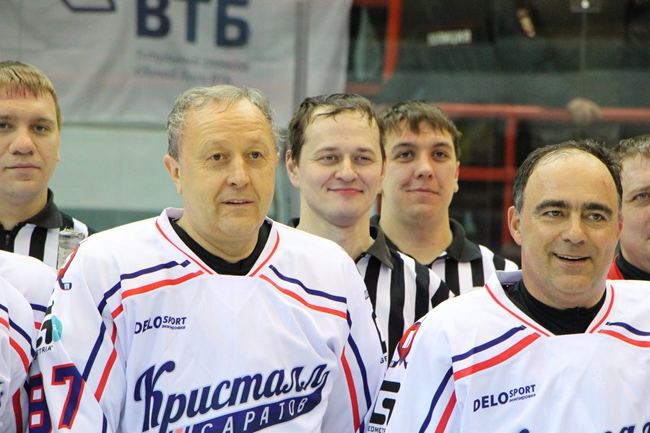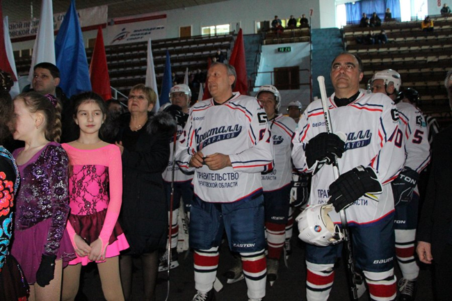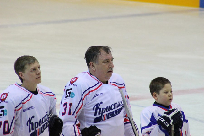 Напомним, счет открыл на 3-й минуте глава региона, потом команда правительства нарастила преимущество до 3:0. Однако вскоре «Трудовые резервы» забили два гола в ворота бывшего вратаря «Кристалла» Павла Горюнова. Далее команды обменялись еще по одной шайбе.