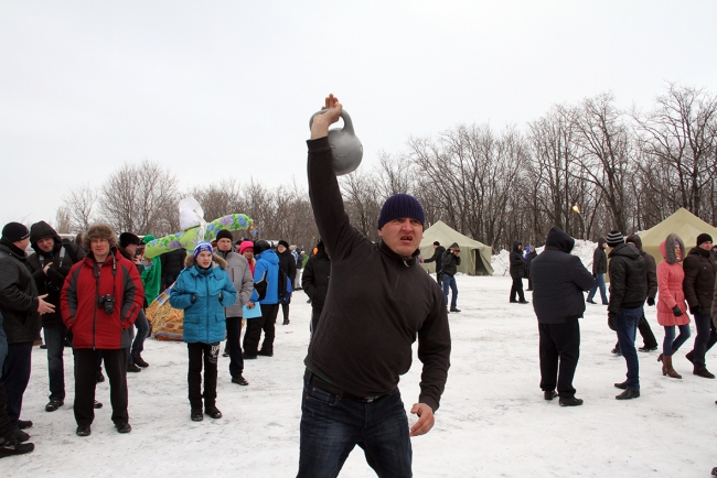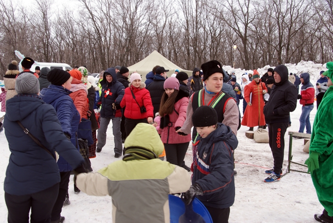 На празднике были и творческие конкурсы - пение частушек под баян, танцы и масленичные загадки. Для всех желающих работала полевая кухня.