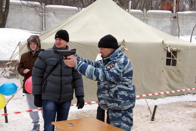 Полицейские состязались в перетягивании каната, поднимали гири, устраивали бои мешками на пеньках, определяли самого меткого в снежном тире.