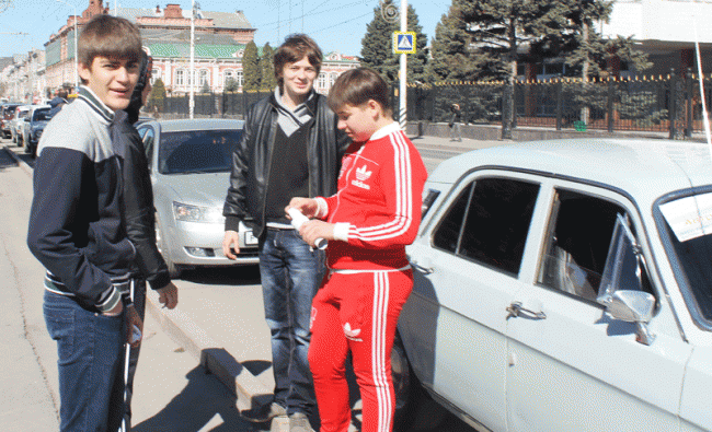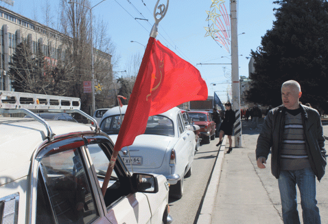 В 10.00 несколько десятков автомобилей с флагами выстроились на улице Московской вдоль Театральной площади. Затем эта колонна при сопровождении полиции отправилась в сторону Энгельса, на место приземления первого космонавта планеты Юрия Гагарина.