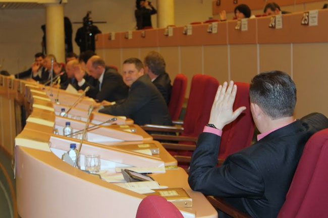 Тогда депутат Карасев предложил утвердить лишь один пункт из поправки главы администрации – выделение 700 млн на переселение граждан из аварийного жилья. За нее проголосовали лишь 4 депутата.