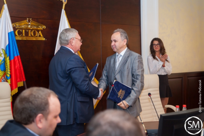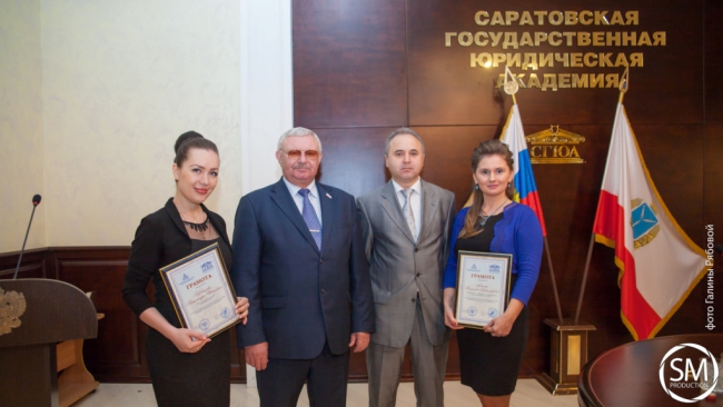 После торжественной церемонии подписания договора об организации формирования кадрового резерва Сергей Шараев вручил благодарственное письмо за плодотворное сотрудничество ректору СГЮА Сергею Суровову. Благодарственными письмами за помощь в организации прохождения практики студентов в Двенадцатом арбитражном апелляционном суде были награждены Татьяна Волкова, судья III судебного состава судебной коллегии по рассмотрению споров, возникающих из гражданских и иных правоотношений, доцент кафедры земельного и экологического права СГЮА, Александра Крючкова, руководитель производственной практики СГЮА, за организацию работы по подготовке и повышению квалификации юридических кадров – Екатерина Ильгова, директор Института второго высшего и дополнительного профессионального образования СГЮА.