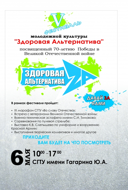 СГТУ приглашает на V фестиваль молодежной культуры «Здоровая Альтернатива»