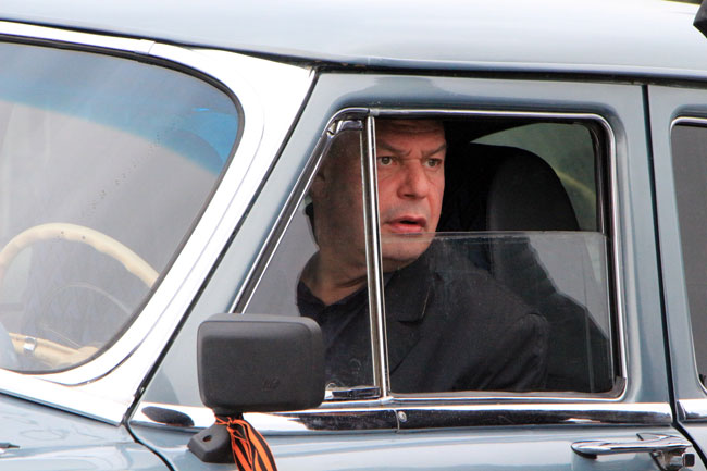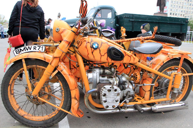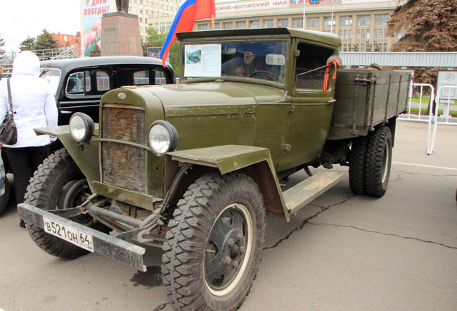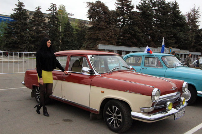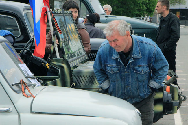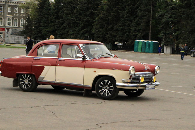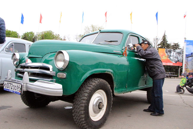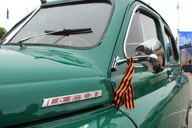 В честь празднования юбилея Победы специально привезли легендарный советский автомобиль «Победа» с полным приводом 1958 года выпуска, признался собеседник. По его словам, сейчас таких экземпляров в стране насчитывается не больше 10, а всего было произведено около 1500.