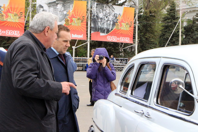 Помимо рядовых саратовцев посмотреть на старинные авто пришли глава города Олег Грищенко, глава администрации Александр Буренин, сенатор Михаил Исаев. Небольшую экскурсию для них провел известный коллекционер, депутат облдумы Леонид Писной, представивший на параде 26 транспортных средств. Во время обхода он рассказал Грищенко о ежегодном автомобильном фестивале «Автострада» в Туле, которое собирает до 1000 машин, около 400 из них являются раритетными. По мнению Писного, в Саратове тоже было интересно провести подобное мероприятие.