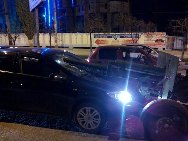 В результате аварии дуло пушки буквально проткнуло лобовое стекло иномарки с пассажирской стороны.