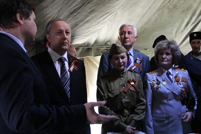 Активисты ОНФ организовали в Парке Победы концертную площадку, где перед горожанами и губернатором Саратовской области Валерием Радаевым выступили воспитанники социального центра «Возвращение». Саратовцев активисты ОНФ кроме того угощали кашей, приготовленной на военно-полевой кухне.
