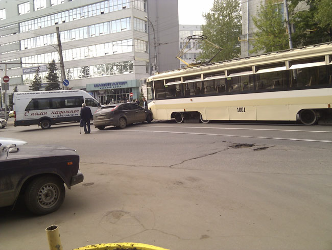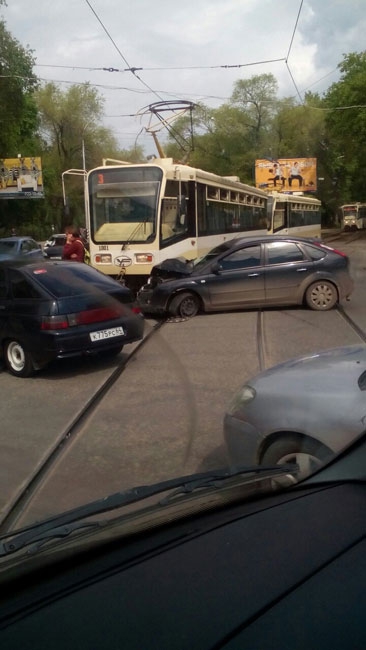 Около часа назад напротив делового центра «Навигатор» на улице Большая Горная в Саратове произошло столкновение трамвая и автомобиля «Форд Фокус». Как сообщают очевидцы в социальных сетях, из-за аварии полностью парализовано движение электротранспорта.