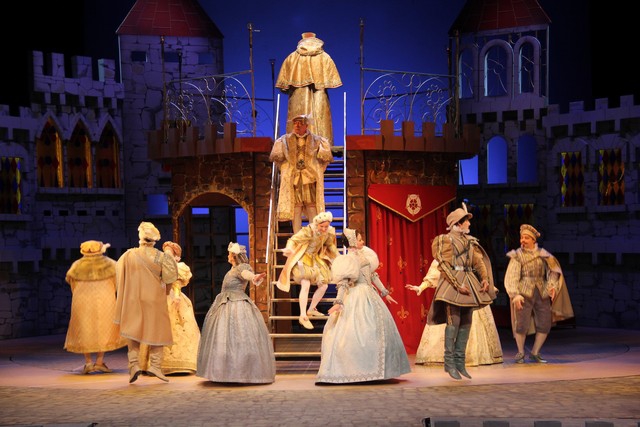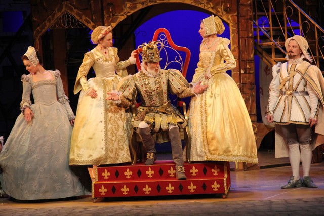 История о том, как на некоторое время поменялись местами внешне похожие, как две капли воды, наследник английского престола Эдвард и оборванец из «Мусорного дворика» Том Кэнти, широко известна. На саратовской сцене ее увидели как синтез постановки в исторических костюмах с современной хореографией. За счет стильных костюмов, отличных декораций (художник-постановщик Марина Алимова (Москва) и работы со светом (художник по свету Виктор Стороженко) удалось создать яркое и красивое зрелище.