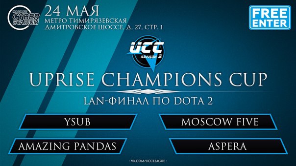 В эти выходные, 23-24 мая на крупнейшей киберспортивной арене России – Moscow Cyber Stadium – состоится долгожданный для многих геймеров LAN-финал Champions League по Dota 2 и Counter-Strike: GO масштабного турнира Uprise Champions Cup 2015 (UCC 2015).