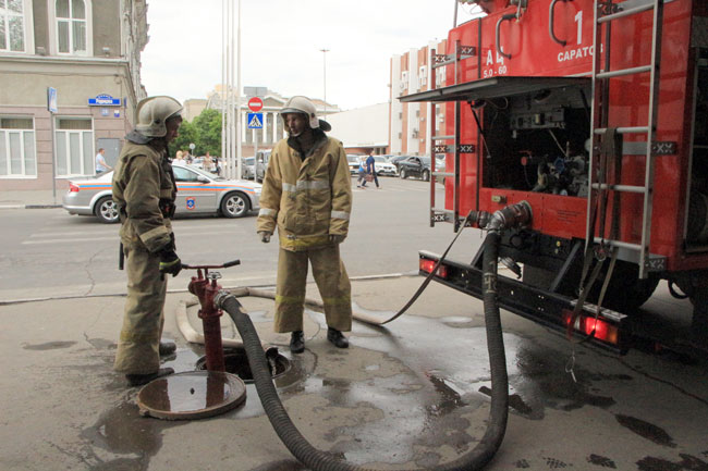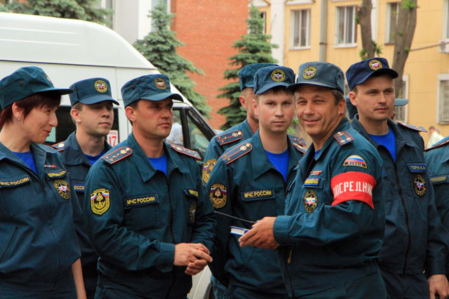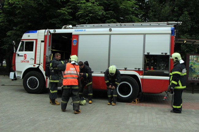 Перед началом учений на площади перед музеем выстроились сотрудники управления и руководствующий состав пожарных подразделений. Стоит отметить, что после того как пресс-секретарь ГУ МЧС Ирина Пригода выяснила, кто из присутствующих журналистов представляет ИГ «Четвертая власть», отношение ее коллег резко изменилось. В частности, замначальника службы пожаротушения, подполковник внутренней службы Алексей Навознов, стоя в центре шеренги руководителей, демонстративно отвернулся от камеры нашего корреспондента со словами: «А вот для «Четвертой власти» я не буду стоять». После чего спешно ретировался из строя. Подобное поведение, очевидно, связано с недавней критической публикацией нашего издания о том, что пресс-служба данного ведомства умолчала о 9 пострадавших на пожаре в Энгельсе.