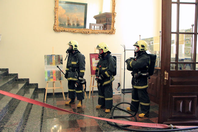 Пожарные автомобили прибыли на место в течение 30 секунд. Такая удивительная скорость была достигнута благодаря тому, что спецтранспорт был припаркован на соседних улицах в квартале от здания музея задолго до начала операции. Сами учения продлились в общей сложности около 40 минут.