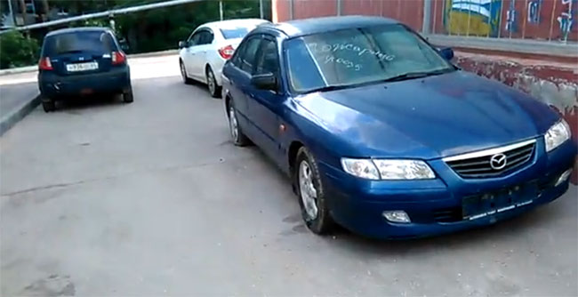 На Техстекло брошенная «Мазда» блокирует въезд во двор