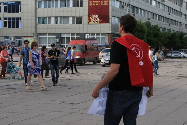 Сегодня вечером на проспекте Кирова в Саратове активисты регионального отделения КПРФ устроили серию одиночных пикетов против поборов в школах. Секретарь горкома Александр Анидалов пояснил корреспонденту «Четвертой власти», что такая форма политических акций стала вынужденной мерой из-за отказа в проведении полноценного массового мероприятия.