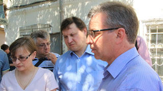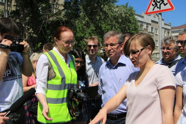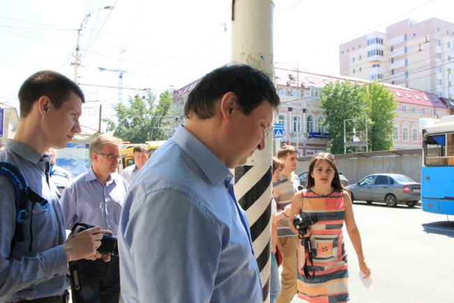 Первым пунктом рейда стала центральная улица областного центра, которая ремонтировалась в 2012 году. На пересечении с улицей Соборной сопредседатели ОНФ Людмила Бокова и Алексей Мазепов подвели городских чиновников и экспертов к канализационному люку, который находится вблизи автобусной остановки на полосе для общественного транспорта. Вокруг него произошло обрушение асфальта диаметром 15-20 см.