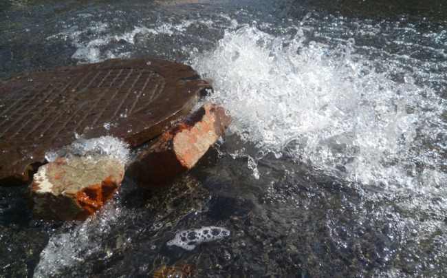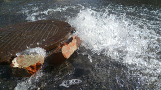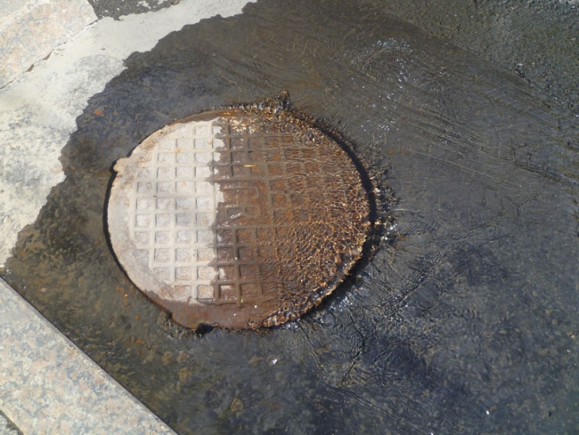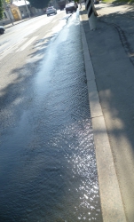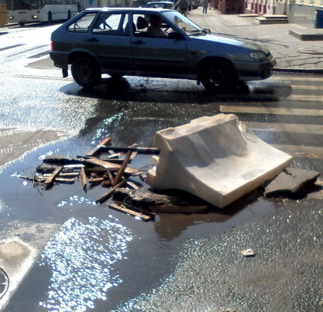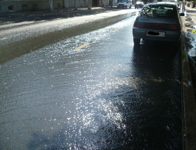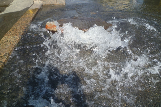 В эти минуты в центре Саратова по улице Московской интенсивно течет вода. По данным корреспондента «Четвертой власти», поток идет сразу из двух колодцев около сквера Первой учительнице, причем из одного она выбивается фонтаном.