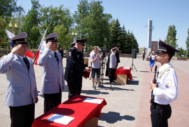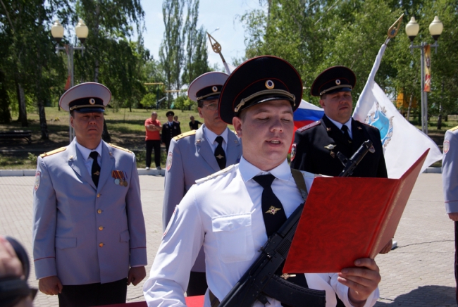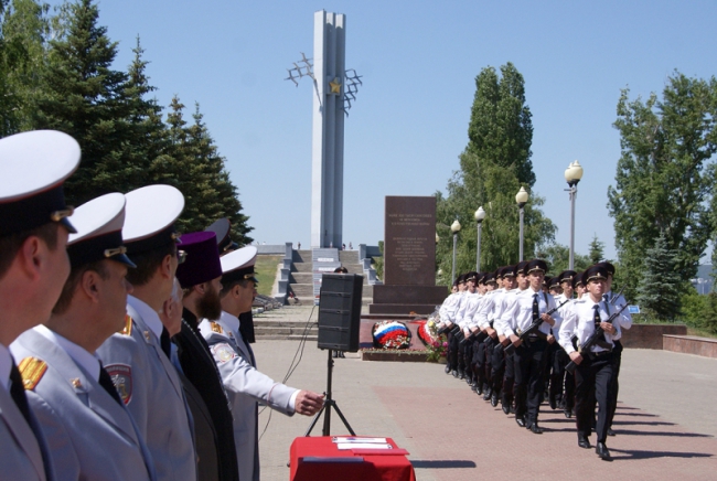 Сегодня в Саратове более 20 молодых сотрудников подразделений вневедомственной охраны полиции области принесли присягу на верность служебному долгу, народу и Отечеству. Торжественная церемония прошла в Парке Победы на Соколовой горе.