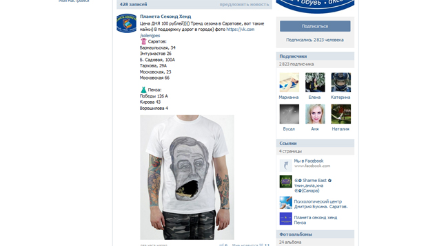 В саратовских группах социальных сетей предлагают футболки с копией портрета губернатора Валерия Радаева, нарисованного на асфальте улицы Сакко и Ванцетти. Так, товар уже оказался в ассортименте одного из магазинов секонд-хенд.