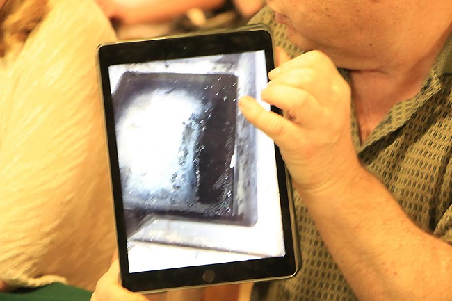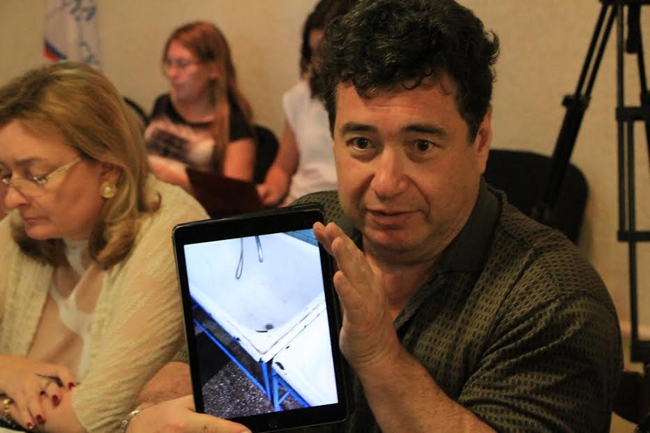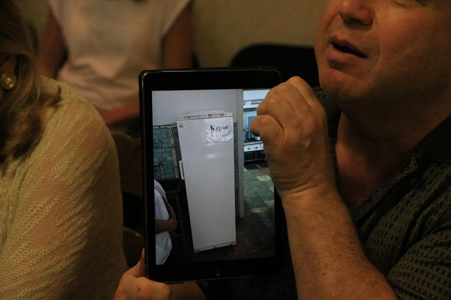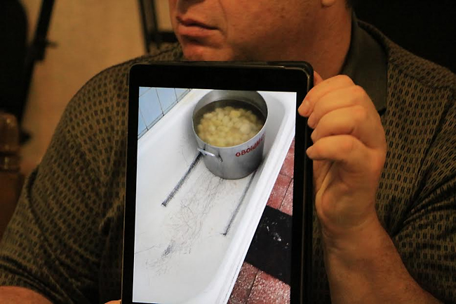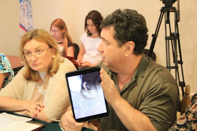 После этого Виткин продемонстрировал фотографии, сделанные в лагере. На снимках он запечатлел грязную фритюрницу, где готовятся пирожки, ванну, где хранятся нарезанные овощи и где они моются. Помимо этого он показал душевые кабины, в которых на полу заметили застарелую грязь. Состояние душевых конструкций также не удовлетворило общественника. Они представляли собой обычные трубы по периметру стены с кранами для воды.