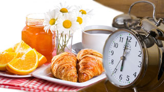 Минздрав рекомендует в жаркую погоду «смещенный» режим питания, при котором основные приемы пищи переносят на более прохладное время суток. Завтрак не позднее 06.00, обед в 11.00-11.30, ужин в 18.00, и небольшой прием пищи в 20.00-21.00. Калорийность суточного питания в этом случае распределяется так: завтрак-35%, обед-25%, ужин-25%, перекус-15%.