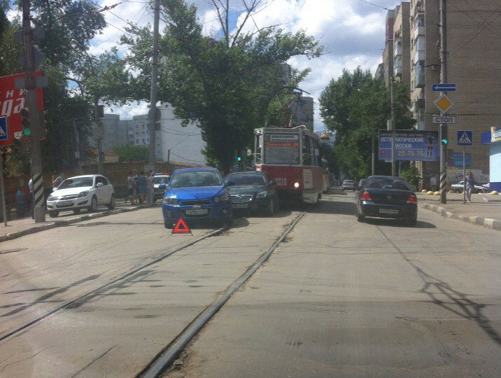 В центре Саратова произошло тройное ДТП с участием трамвая