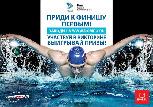 Телеком-оператор «Дом.ru» и телеканал Eurosport HD приглашают клиентов оператора к участию в новом конкурсе. Двадцать победителей получат входные билеты на две персоны на 16-й чемпионат мира по водным видам спорта, который пройдет в Казани с 24 июля до 9 августа.