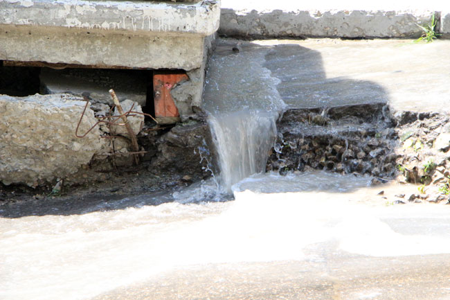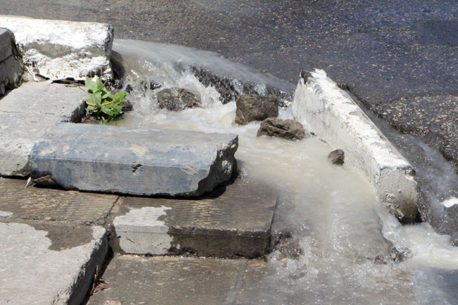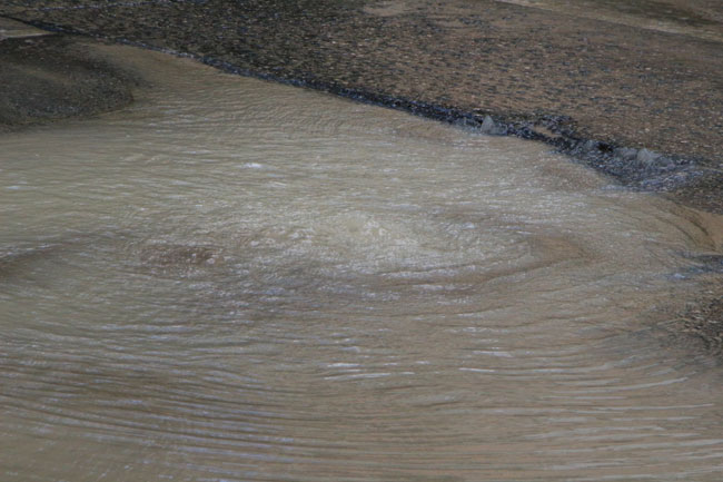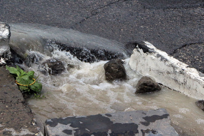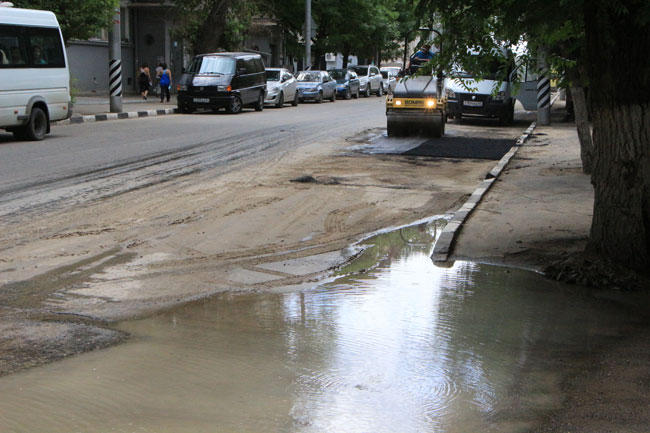 Примечательно, что в нескольких метрах от источника коммунального «водопада» проводится ямочный ремонт.