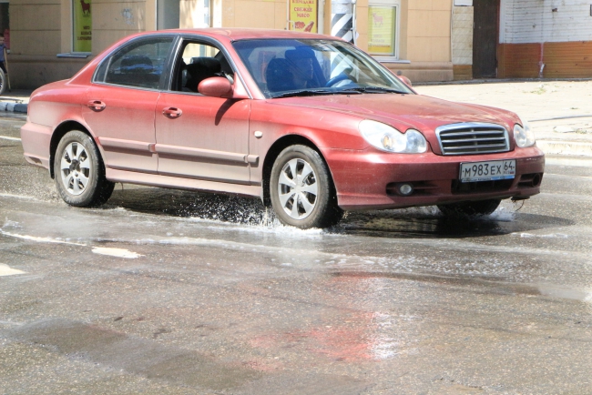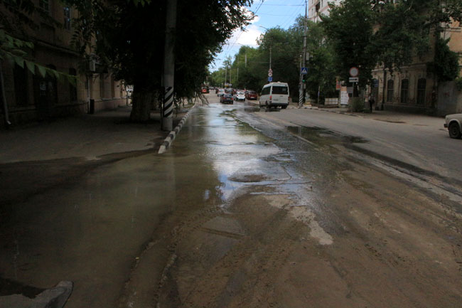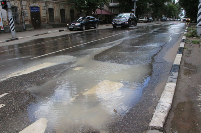 На пересечении Чернышевского и Бабушкиного взвоза в Волжском районе Саратова из-за коммунальной аварии затопило проезжую часть и тротуар. В результате прорыва из-под асфальта бьет мутная вода.
