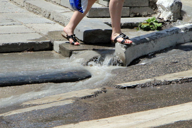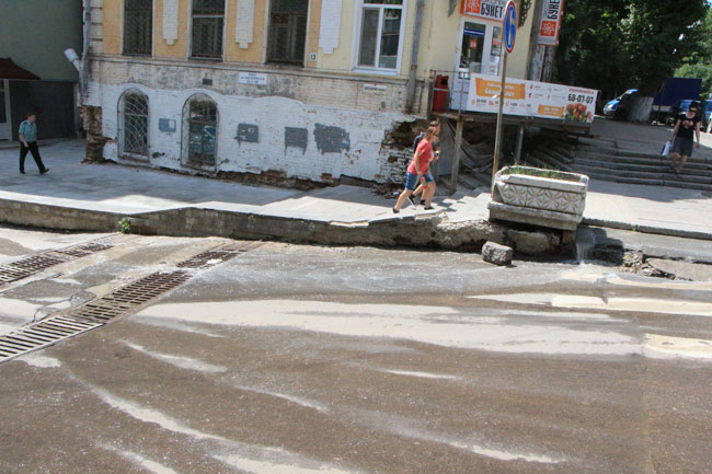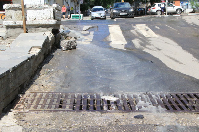 На тротуарах по улице Чернышевского образовались «водопады»