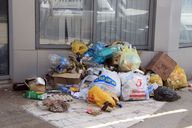 Саратовцы забросали вход в банк пакетами с мусором
