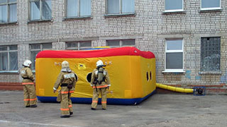 Специалисты горспаса развернули устройство эвакуации «Каскад 5» («Куб жизни») и уговорили мужчину прыгнуть на него. Саратовец благополучно приземлился в спасательное устройство.